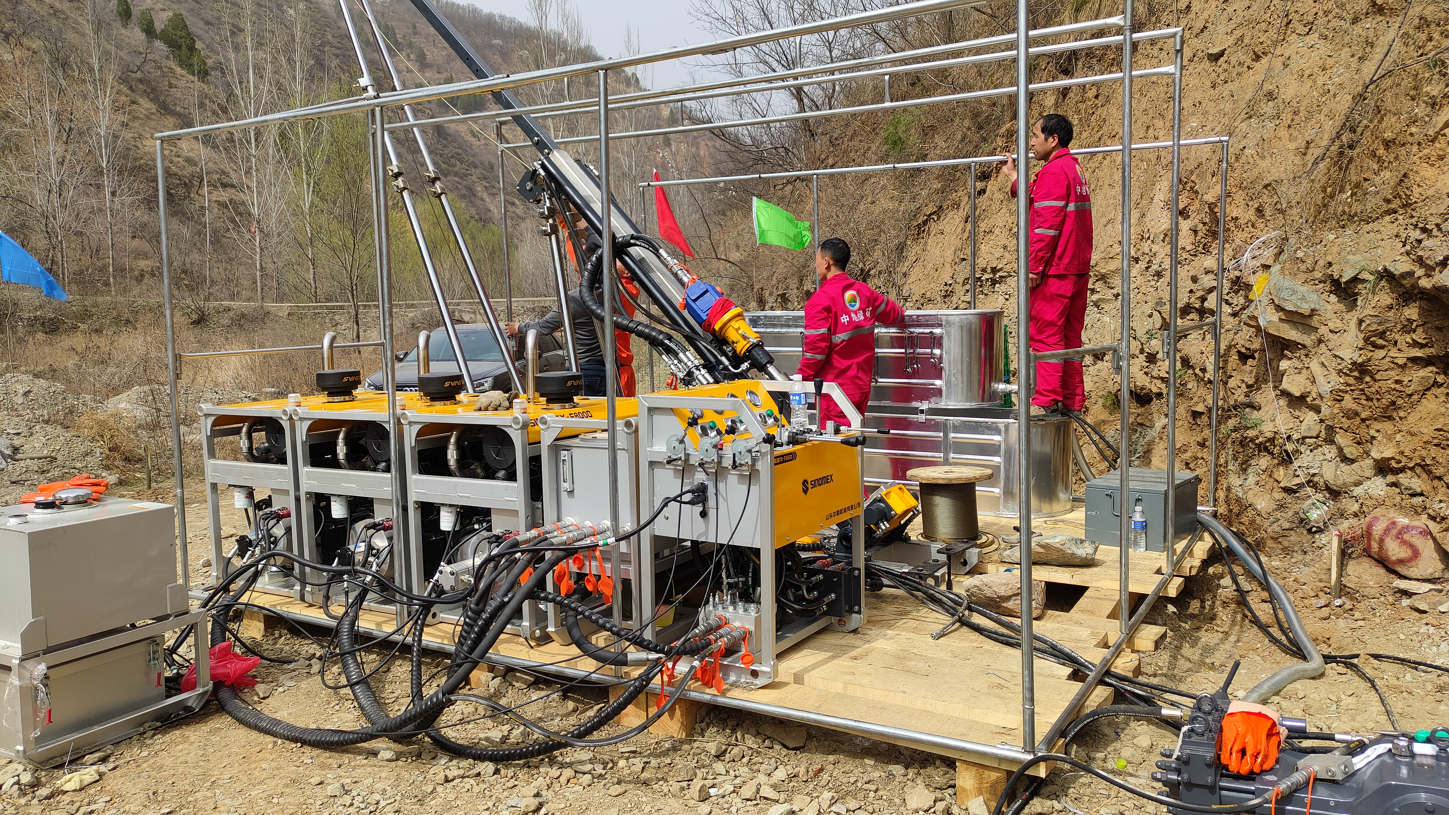 進場搬遷快速,拆卸容易,安裝簡便,人工通道小道運送,不需要修建運輸道路,1-2小時可完成基礎拆裝 ,縮短勘探工期,鉆機安裝需要4 x 4米場地,為礦山企業節約基礎建設和管理成本